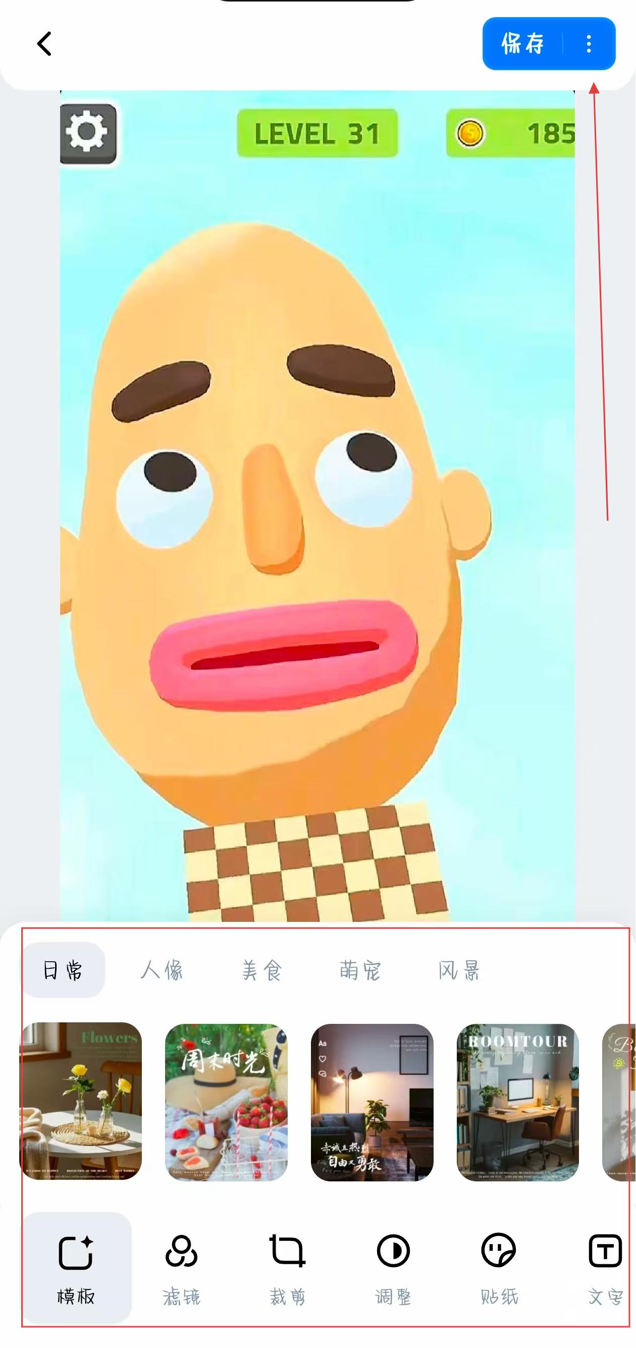 3、图片上传后,可使用底部工具栏的模板和功能,对图片进行风格、尺寸、内容等方面的编辑调整。