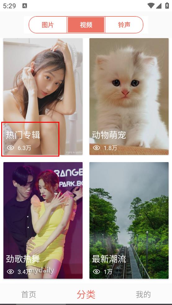 3、在分类页面,选择热门专辑,进入热门专辑页面。