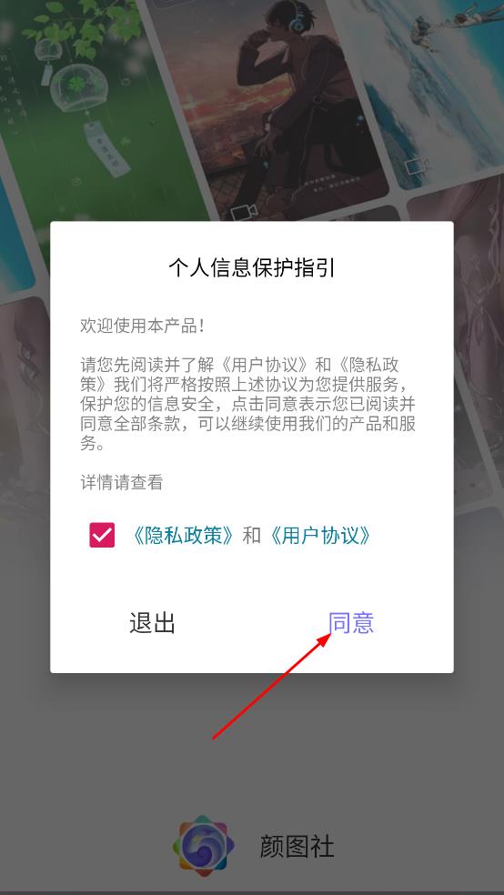 1、在个人信息保护指引弹窗中,点击同意,进入颜图社主界面。