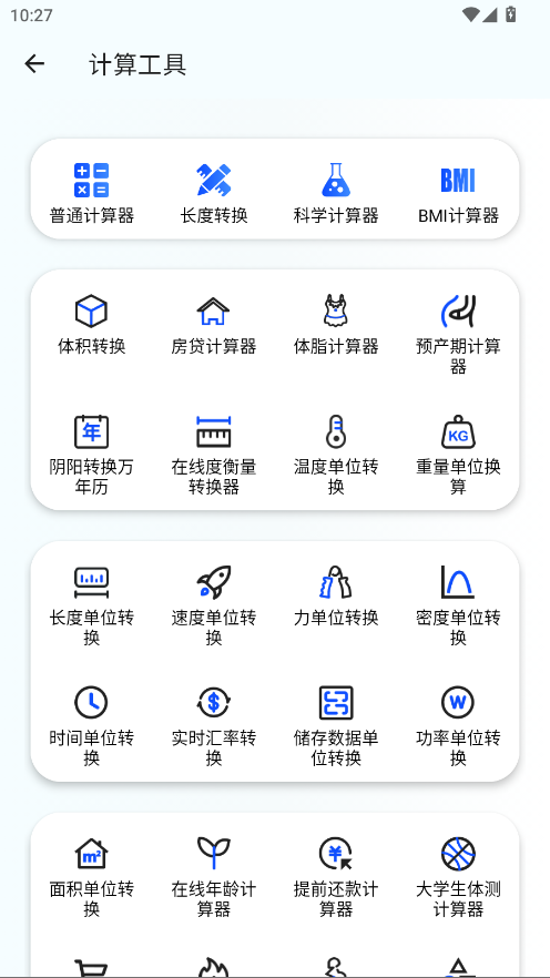 点击你需要的计算工具后,应用会即时加载,用户可以直接开始使用,无需繁琐的设置,完全符合快捷高效的使用需求。