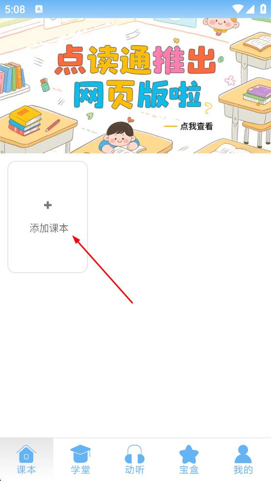 2、在点读通主界面,找到“添加课本”选项,点击该选项,进入添加课本页面。