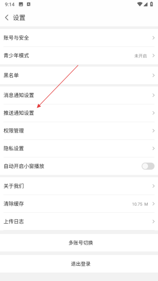 3、在设置界面中,点击推送通知设置选项,进入推送通知设置页面。