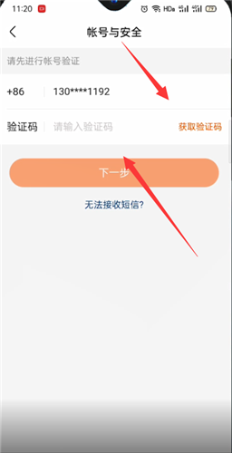 6、接着选择获取验证码,接着输入验证码,