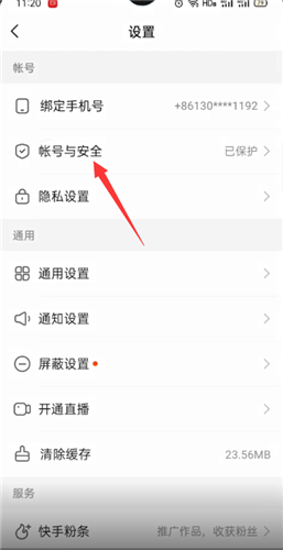 3、在设置里面选择账号与安全,