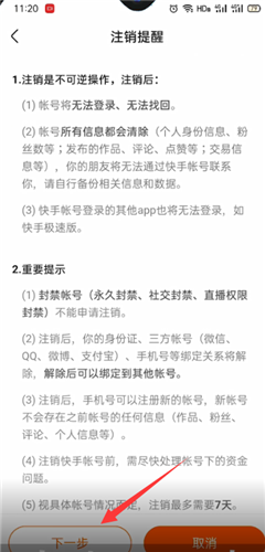 5、阅读注销提醒,点击下一步,