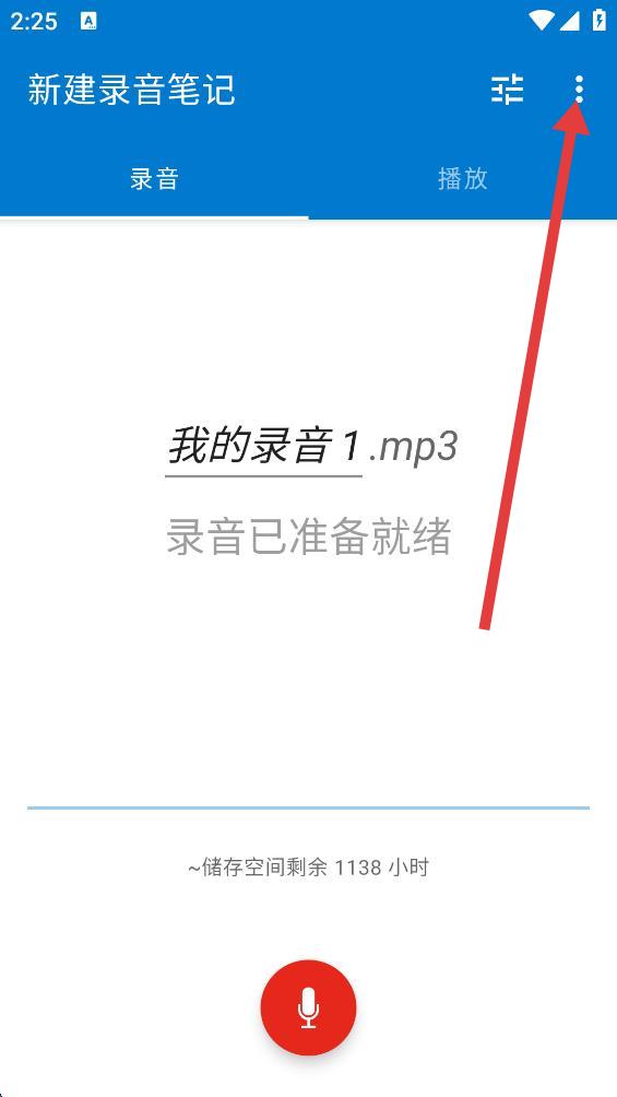 1、进入新建录音笔记界面,点击右上角三点图标。