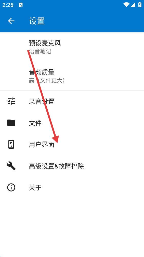 3、进入设置页面后,点击用户界面选项。