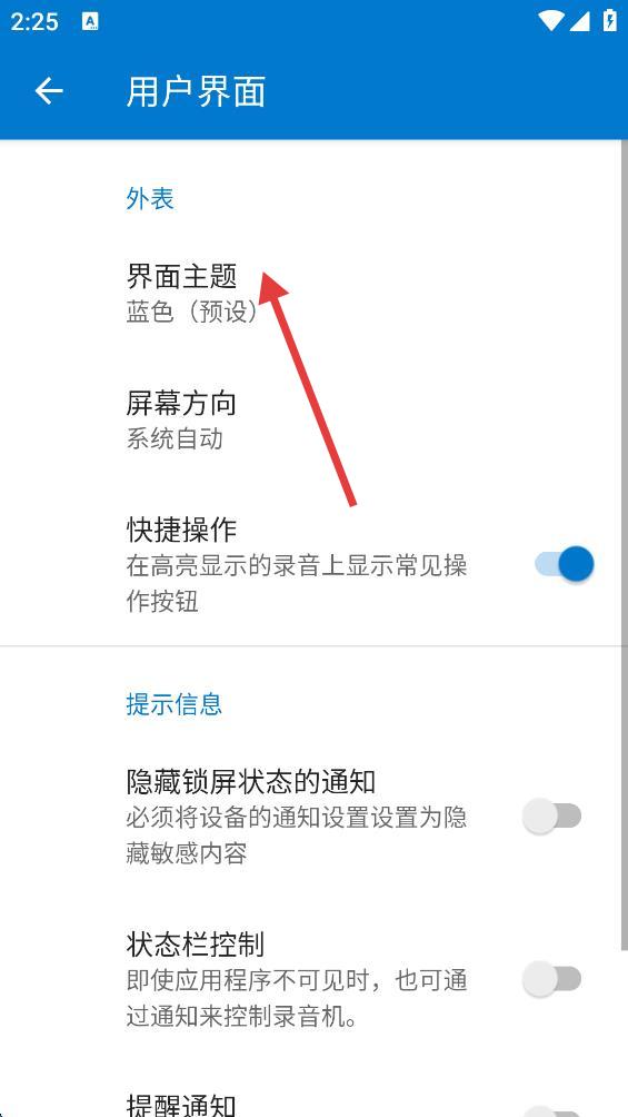 4、找到界面主题选项,选择自己喜欢的主题颜色,点击即可切换。