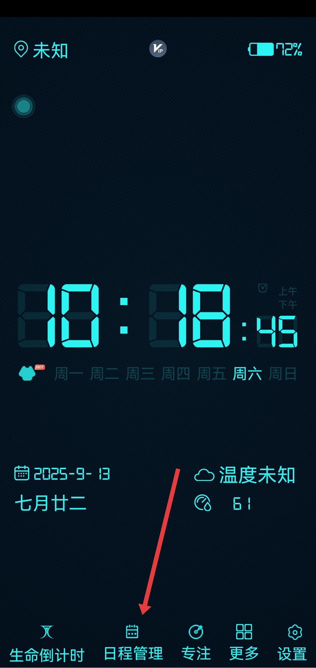 1、在主界面点击底部导航栏中的日程管理选项,进入日程管理页面。