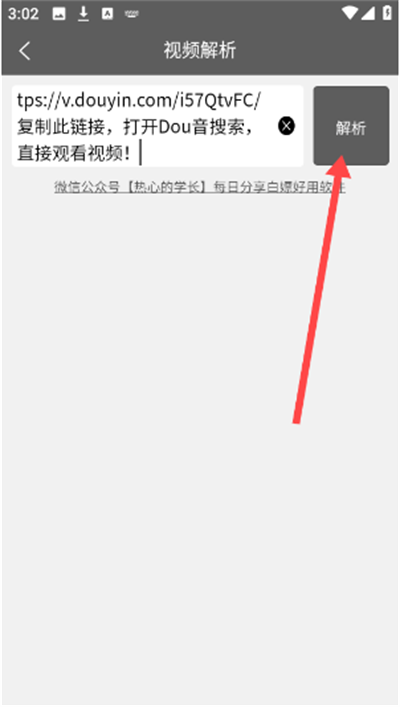 4、然后输入正确的视频链接地址,点击“解析”。