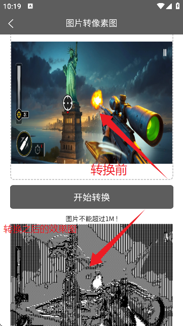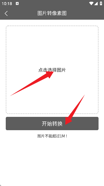 4、例如【图片转像素图】进入到编辑器界面中,如图所示。点击选择图片,然后点击底部的开始转换。
