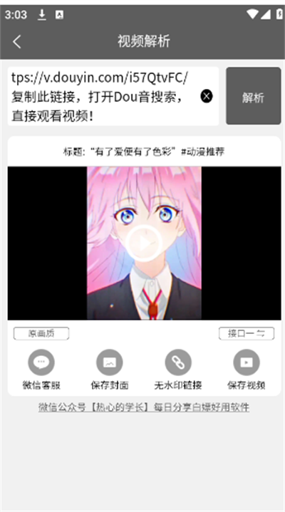 5、等待片刻之后,界面上就会成功解析刚刚的视频内容。