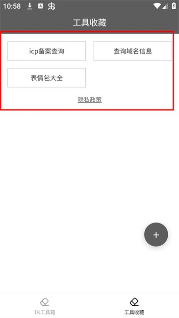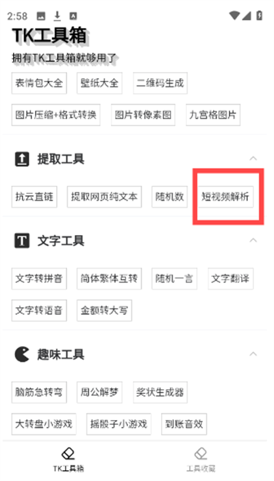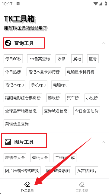 1、在本站下载安装TK工具箱app,打开应用。