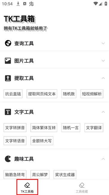 TK工具箱App是一款集合多种实用功能的便捷工具平台,涵盖查询、图片、提取、文字、趣味五大类数十种小工具,满足用户在生活与工作中的多样需求。无论是信息查询、图片编辑、文本处理还是轻松娱乐,都能通过简单操作快速实现。软件界面简洁清晰,工具分类明确,用户只需点击即可使用。TK工具箱让手机变身万能助手,一站式解决日常问题,是贴心高效的实用工具合集。