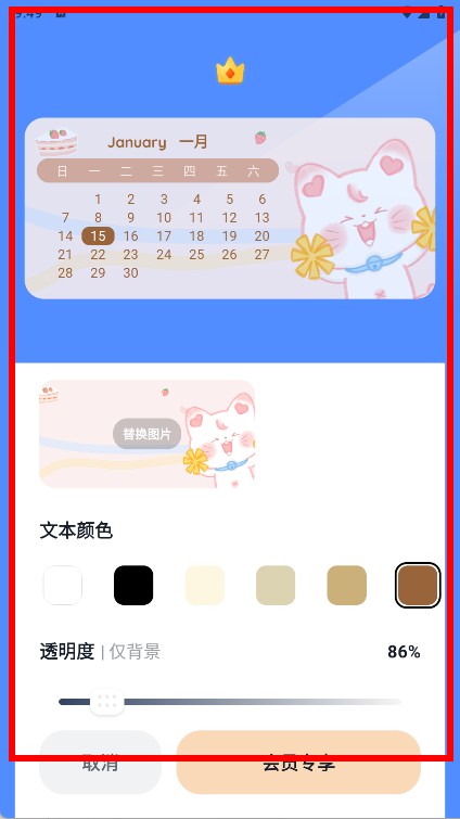 4、进行替换照片、设置文本颜色、调整透明度等操作,设置完成后添加到桌面并应用设置。