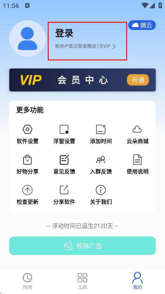 1、在时间显示页面,点击底部我的,进入个人中心页面。