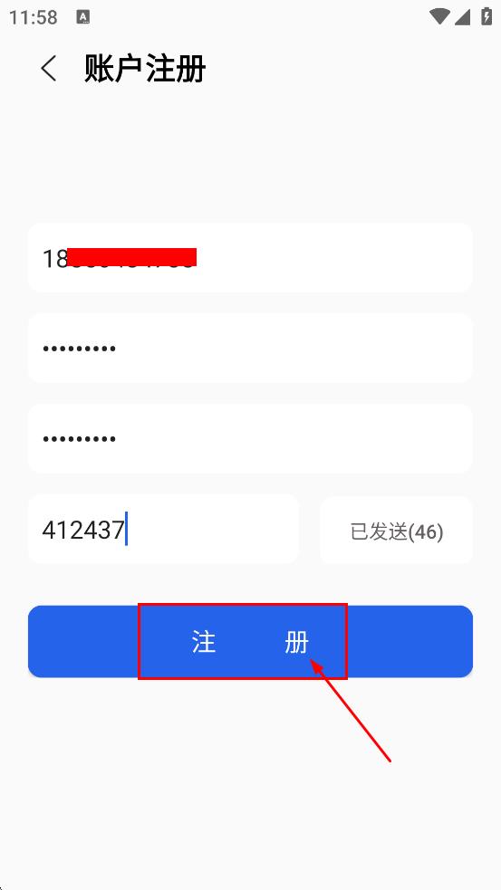 4、在账户注册页面,填写相关信息后,点击注册,完成账户注册。