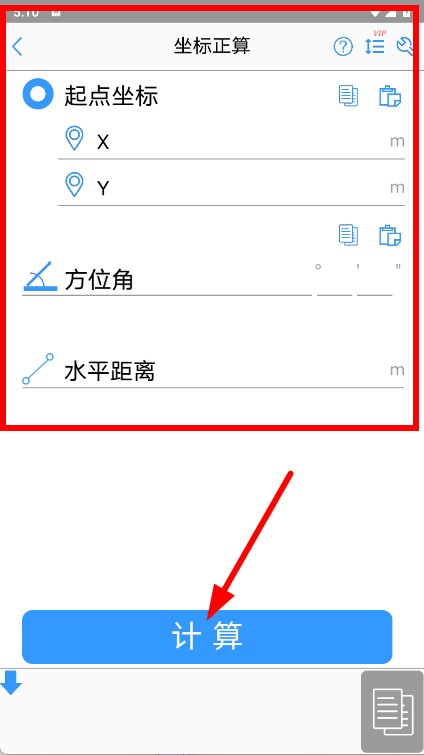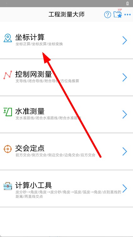 2、在APP主界面,点击坐标计算选项,进入坐标计算页面。