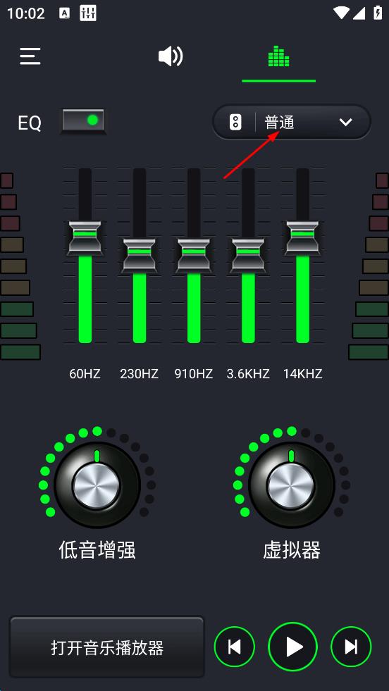 2、在音效设置页面,找到“普通”下拉选项,点击该选项,展开音效类型列表。