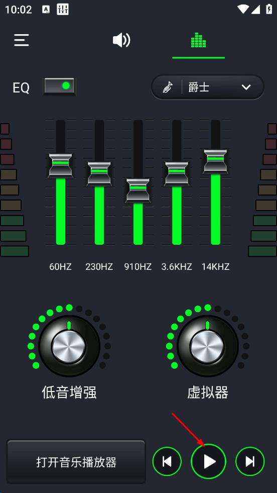 4、设置好爵士音效后,点击界面下方的播放按钮,即可聆听带有爵士音效的音频,体验爵士风格的音频效果。