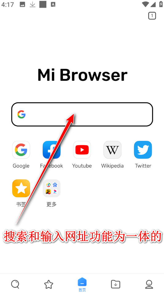 1.小米浏览器搜索和输入网址功能为一体的,在搜索框输入网址即可