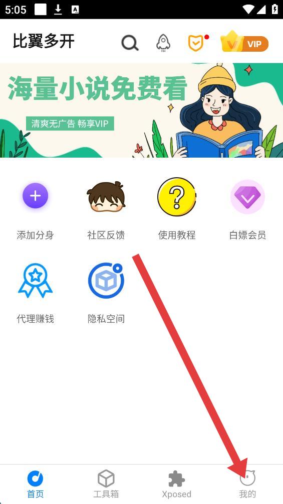 1、打开比翼多开APP,点击底部导航栏右下角我的选项。