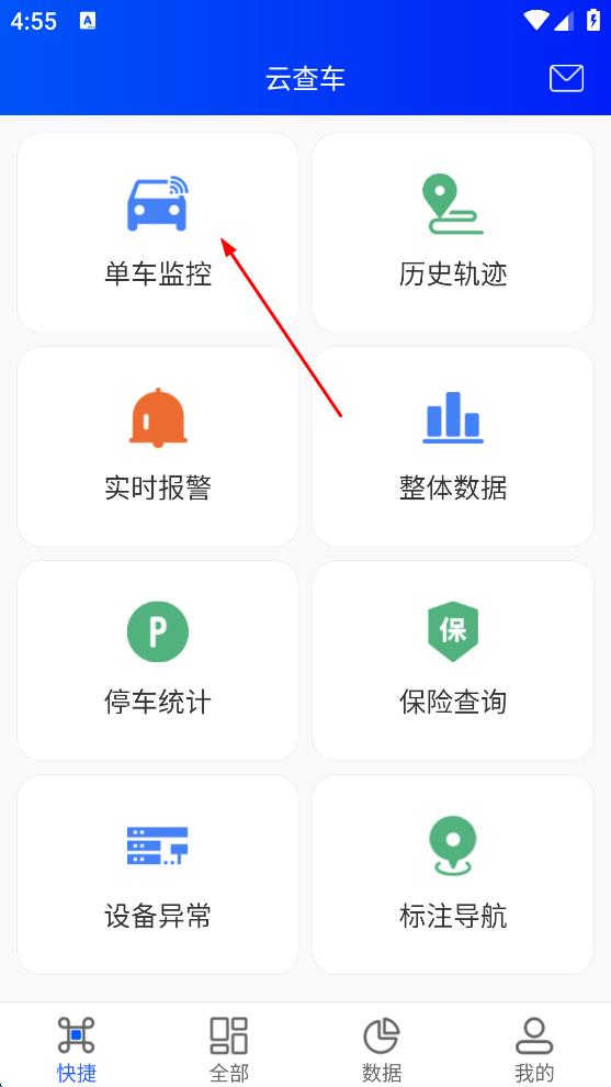 2、在云查车主页面,点击“单车监控”,进入单车监控相关页面。
