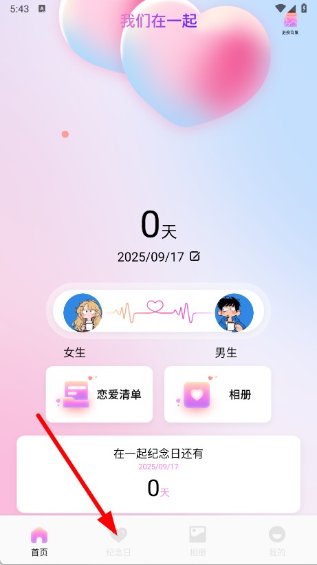 1、打开赛雷卡闪记APP,点击底部纪念日选项,进入纪念日页面。
