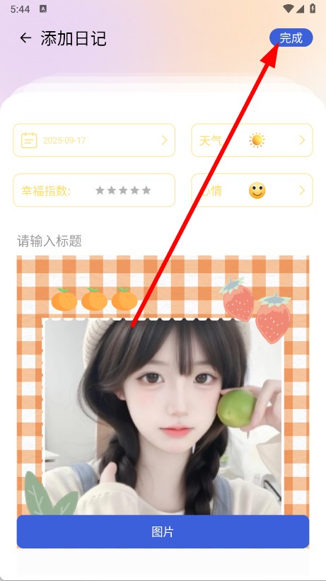 4、编辑完成后,点击右上角完成按钮,即可保存该恋爱日记。