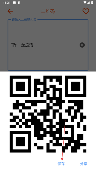 4、二维码生成后,可点击保存按钮将其保存到设备,或点击分享按钮把二维码分享给他人。