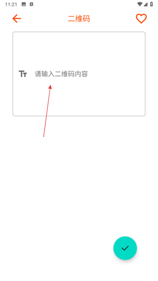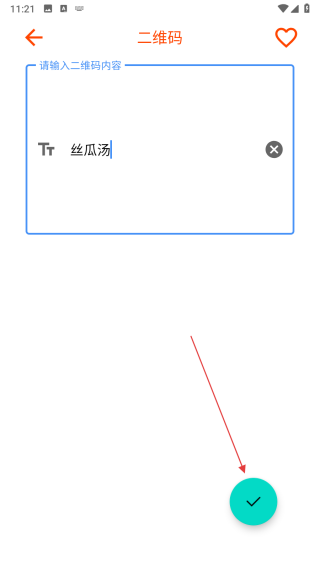 3、输入内容后,点击界面右下角的绿色对勾按钮,生成对应的二维码图案。