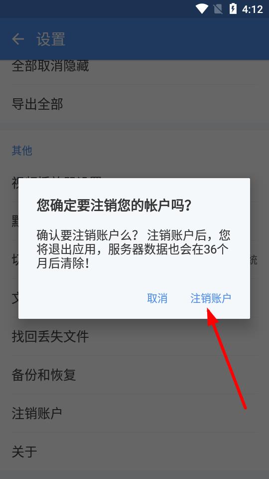 4、在弹出的确认提示框中,点击注销账户,按照提示完成后续操作,即可注销账号。