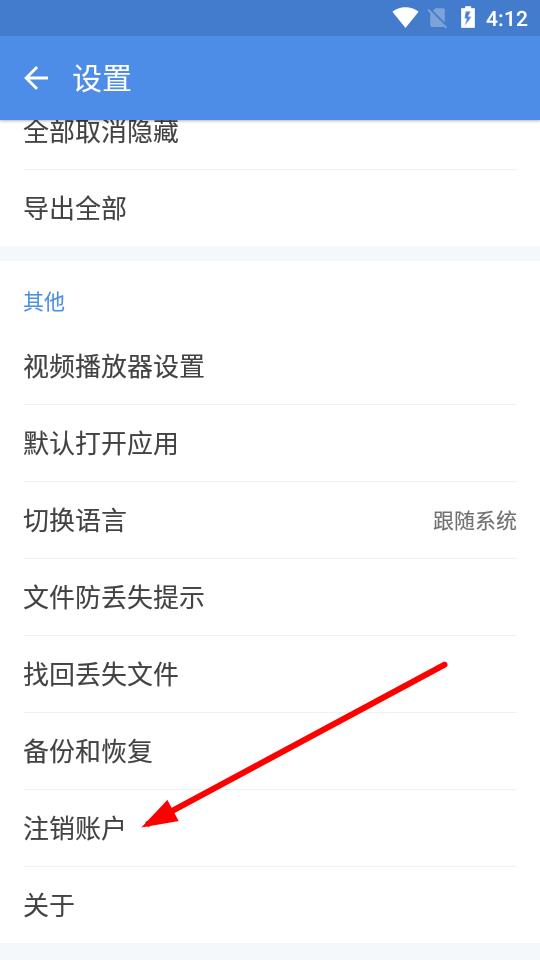 3、在设置页面里,向下滑动找到注销账户选项并点击。