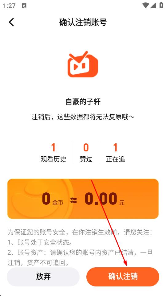 6、在确认注销账号页面,再次确认账号相关信息,点击确认注销,完成注销操作。