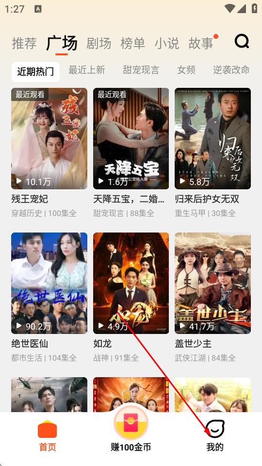 1、打开全民短剧APP,点击底部导航栏中的我的。