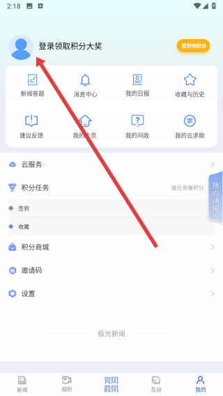 2、在进入到我的页面后,点击上方头像区域,进行登录操作。