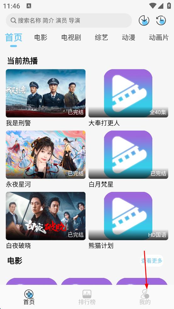 1、打开电影驿站应用,在首页点击右下角“我的”选项,进入个人中心页面。