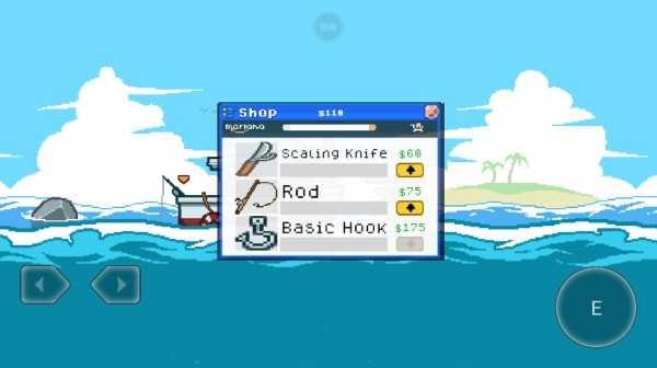 5、使用右上角的按钮进入商店购买升级您的刀,钓鱼线,和钩!
