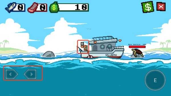 2、前往最左边的钓鱼台,点击E开始钓鱼。钓鱼线会自动下降;使用左右方向键来控制它的方向。用鱼钩撞击一条鱼,对它造成伤害,伤害足够后将它钓上来。
