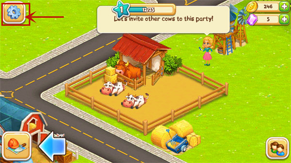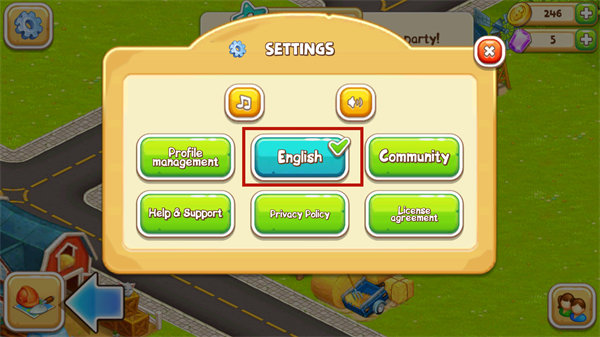1、游戏初始语言为英文,进入主界面后点击右下角齿轮形状的设置按钮。