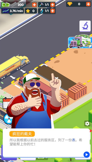 每个参与者都从经营一个小型加油站开始业务,并通过建立包括住宿和卡车服务店在内的众多设施来扩展业务。通过升级加油站和开放更多停车场,玩家可以建造洗车、餐厅、浴室和便利店等其他建筑